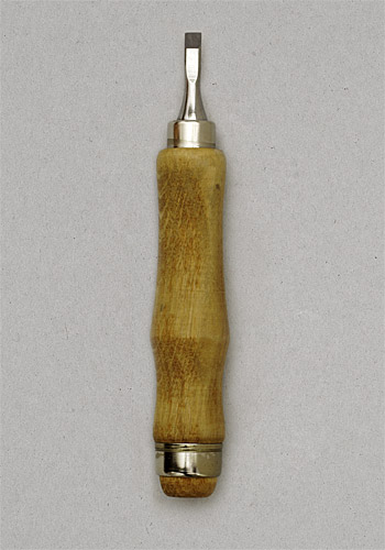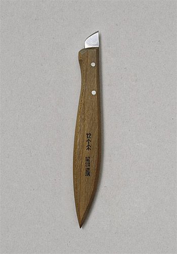 Ich ziehe Klingen beständig von Hand auf Schärfsteinen ab. Klingen und Steine nutzen sich ab / seit 2002 / hier: Schnitzmesser, Fuchsmesser, 2 Stechbeitel, Offiziersmesser